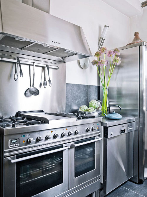 Jag gillar så mycket här, titta bara på golven, taket, färgklicken av pioner i en grön vas, de grå och naturliga färgvalen, det grova industriköket, den öppna planlösningen och ljuset. Det faktum att den ligger i Paris gör den ju inte mindre åtråvärd. Se mer via länkarna i bildtexten /Haje