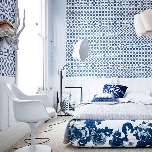 Such a perfect use of Mairo's fabric Mademoiselle. blue and white in different patterns always seems so clean. Like a blue door on a white house in Greece, or a white and blue striped shirt. Still fun though, because of the pattern mix in the picture! /Hanna